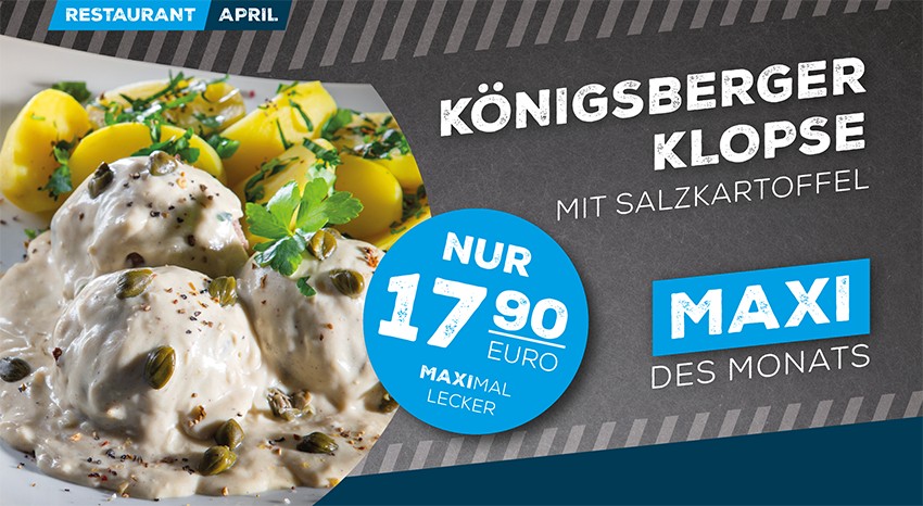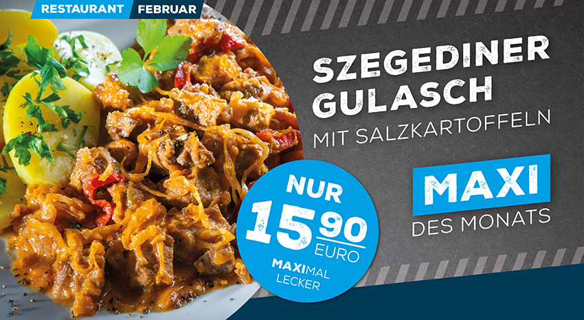 Nicht gültig für Tagesangebote oder in Verbindung mit anderen Promotion- / Saisonangeboten. Gilt nur für den Verzehr in MAXIs Gaststätte und nicht für Mitnahme.